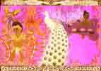 Ganesha A goddess called Parvati was annoyed by demons spying on her. She created a sturdy young man with four arms to guard her rooms. He was a good guard. He would not even let Parvati's husband, the god Shiva, pass. Shiva was annoyed. He made a beautiful dream figure rise up. When the guard turned to look at the vision, Shiva cut off his head. Parvati was very upset. Shiva promised to give her guard another head. It would resemble the first animal to pass them. Some elephants went by. Shiva gave Parvati' s guard the head of an elephant. They called him Ganesha. People worshipped Ganesha as a bringer of good luck. Ganesha loved to eat. After one very long meal, Ganesha decided to take a ride in the moonlight. Ganesha’s steed was a demon he had turned into a rat. They had not gone very far when a snake leapt out at them. The rat was so frightened he reared. Ganesha was sent tumbling. Ganesha hurt his fat stomach, so he used the snake as a bandage. The moon and stars saw what had happened and laughed at Ganesha. Ganesha was very angry. He broke off one of his tusks and hurled it at the moon. The moon's light went out and the stars scurried for cover. Far below, the people were plunged into darkness. They prayed to the gods to give them back of the light of the moon. The gods summoned Ganesha and asked him to restore the moon. But Ganesha was still angry. Ganesha allowed the light of the moon to return, but only for a short while. The moon would spend most of the time waxing and waning so his smile would never be very wide for long. Satisfied, Ganesha was not angry any more. |