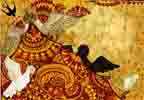 The Grunnick The Grunnick lived in the middle of a large wood. The animals brought him food and other gifts because they believed he could switch off the sun. The Grunnick dressed himself in fine clothes and precious jewels. One day he decided to crown himself king of the wood. He summoned the animals. The Grunnick ordered the animals to bring him the richest clothes and jewels they could find. The animals were afraid the Grunnick would switch off the sun if they did not obey. They dashed away into the towns and castles. The birds swooped down and snatched the cloak from a nobleman walking on his castle's battlements. The brown rat crept into the chamber of a princess and ran off with her rings and bracelets. In the market, ribbons fluttered from a peddler’s tray. The hedgehog caught them on her spines and carried them off. A procession stopped so a queen could smell some blossom. As she stepped from her carriage, the stag snatched her crown up on his antler and bounded away. In the procession was a cage on the back of a mule. The hind lifted its latch. The monkey inside the cage leapt out and clung to her neck as she darted away. When the Grunnick saw the monkey he decided it would be his page. The monkey helped dress the Grunnick in the clothes and jewels the animals had collected. The crown would not go on. Stopping it was a small ring behind the Grunnick's ear. The page pulled at the ring and out came a plug. Air gushed from the hole and the Grunnick deflated. There was nothing left of the Grunnick but a heap of clothes. How would the sun rise without the Grunnick? The animals trembled in fear all through the night. But, in the morning, the bright rays of the sun once again poured into the wood. |